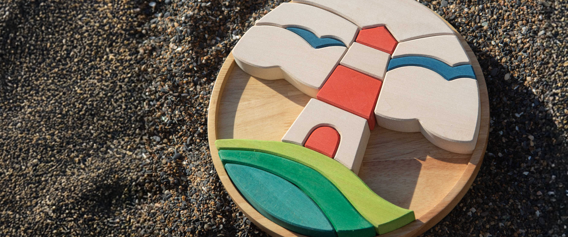 series are a unique series of thick wooden puzzles handmade with high quality solid lindenwood. The thickness of the puzzle can be played as a wooden block toy. Each puzzle block comes with a round wooden tray.
