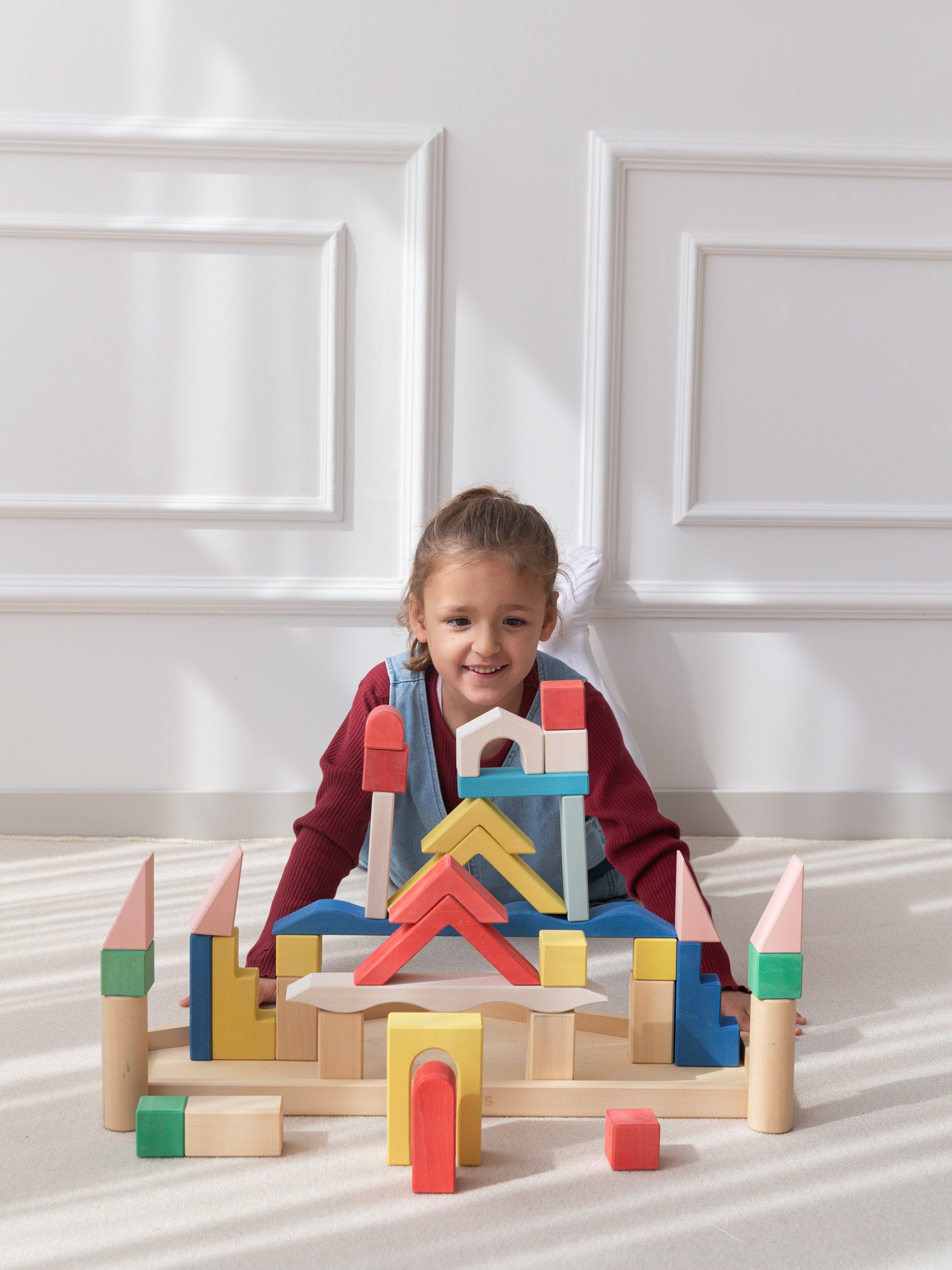 AVDAR Big Block Set includes 37 diverse pieces from basic shapes like cube, triangles and brick block, to more interesting ones like the long waves, cylinders and stair shapes.