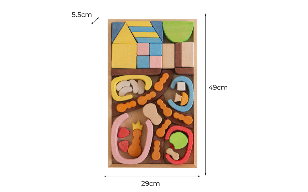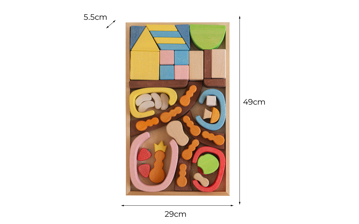 With 49 diverst pieces, this set supports open-ended play, STEAM play, pretend play and stacking challenges. It introduces children to the social structure of ant colony, featuring a queen ant, worker ants, tunnels and chambers. Included apples, nuts and strawberries reflect the ant's food preferences, whild basic geometric shapesallow for recreating the human world and the ants' journey across it.