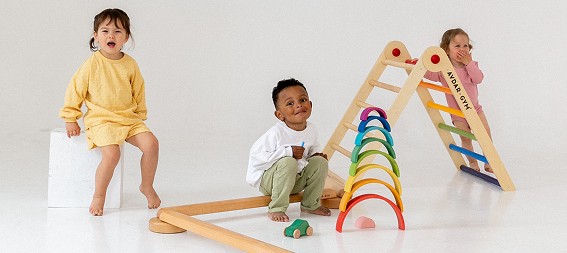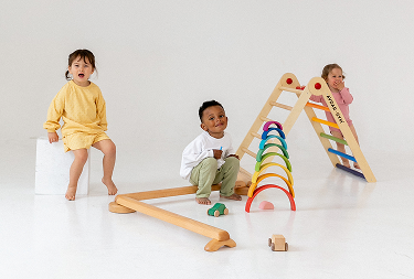 Stands for wooden climbing structures such as gyms, ladders, triangles etc. that help kids to practice gross motor skills and release their energy. It also includes accessories for such structures.